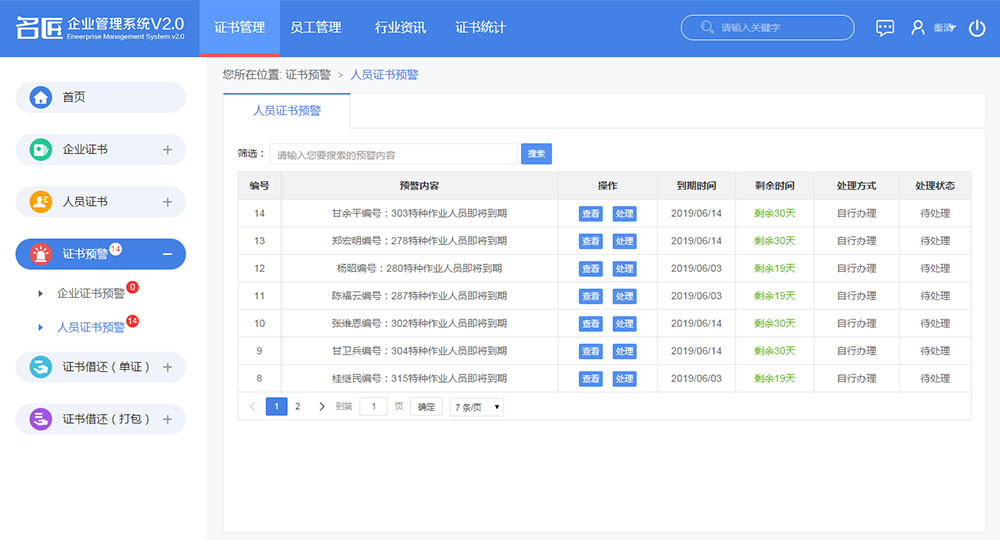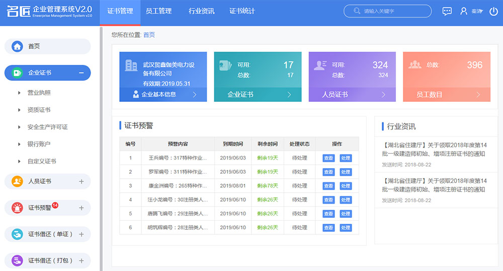 我們擁有專業(yè)的證件管理軟件,專門解決建筑類企業(yè)長期存在的證書過期、分類復(fù)雜、人員流動(dòng)大、證件保管統(tǒng)計(jì)難的問題,專業(yè)的電子化分類管理并通過預(yù)警系統(tǒng),及時(shí)對到期證件進(jìn)行提醒,為客戶提供全程跟蹤服務(wù)。